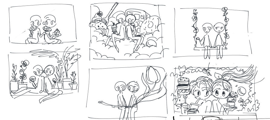 もうちょっとお花とか書いてもよかったですね。画面が埋まりすぎるかなぁと思ってしまったので次は植物メインとかも描いてみたい。