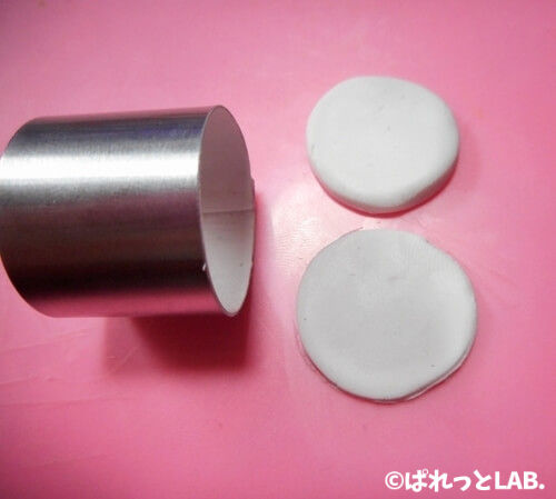 まずは粘土を伸ばして円形の型でくり抜きます。