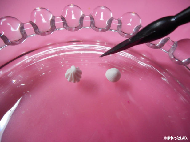 リキッドタイプのフィモに粘土を混ぜると柔らかくなるのでクリームみたいな表現が作れます。