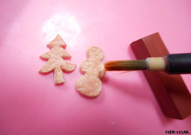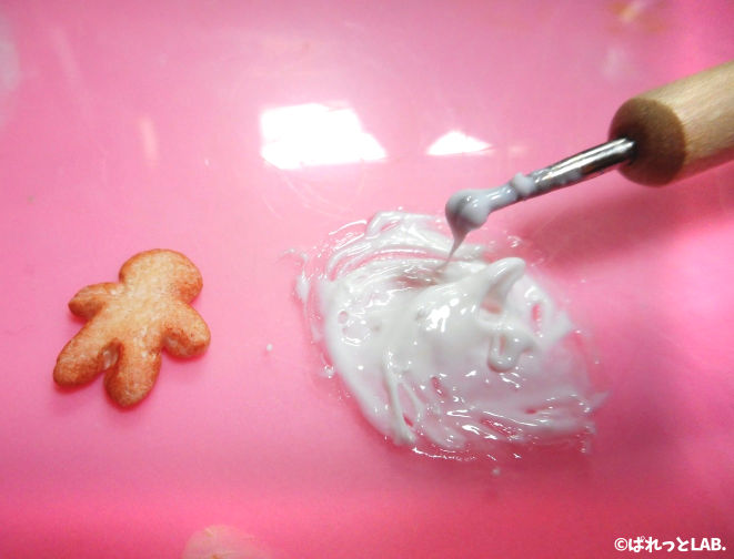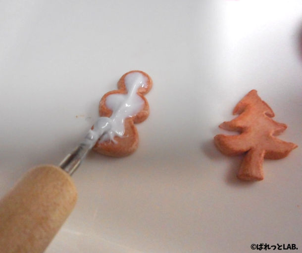 クリーム状になったリキッド粘土を、クッキーの上に乗せて塗っていきます。